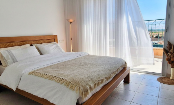 - 2 חדרי שינה זוגיים כאשר בכל חדר: מיטה זוגית מפנקת, שידות לאחסון, מיזוג אוויר.