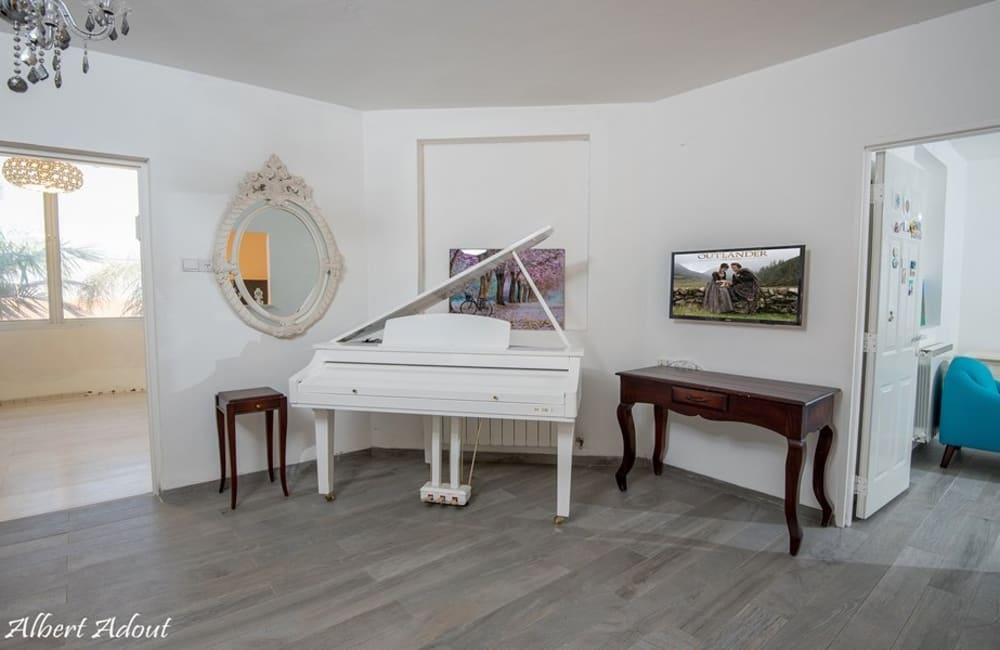 פסנתר ופינת מחשב עם גישה לאינטרנט