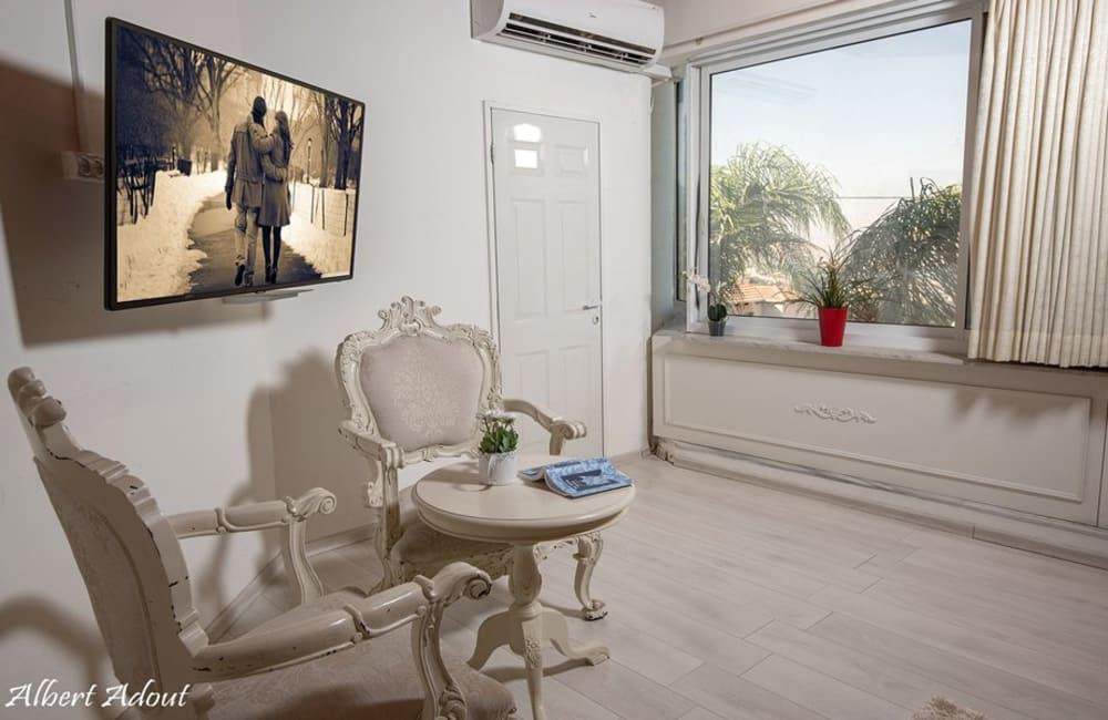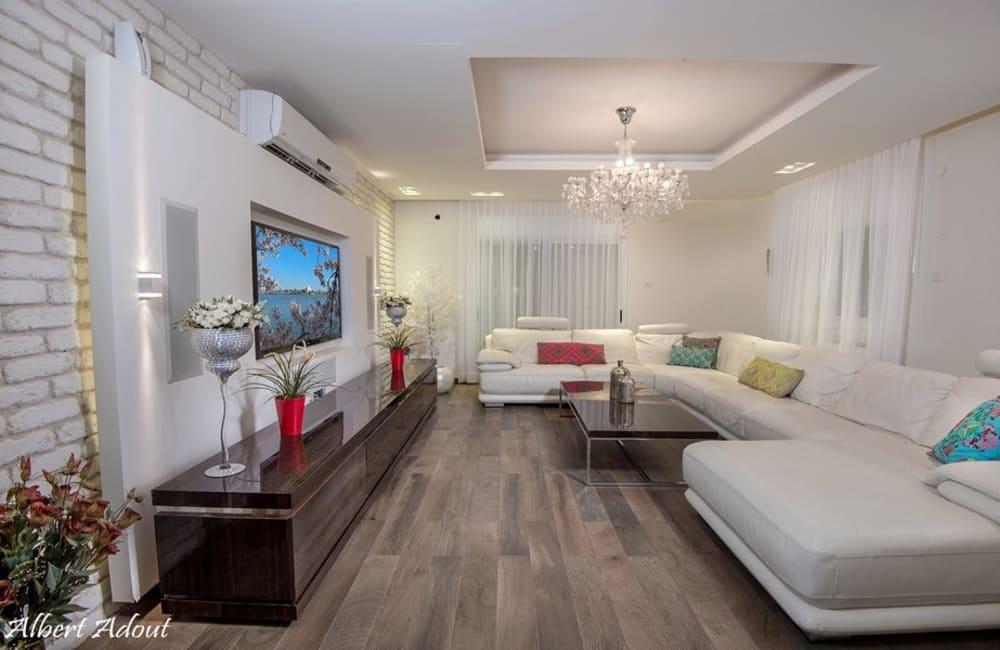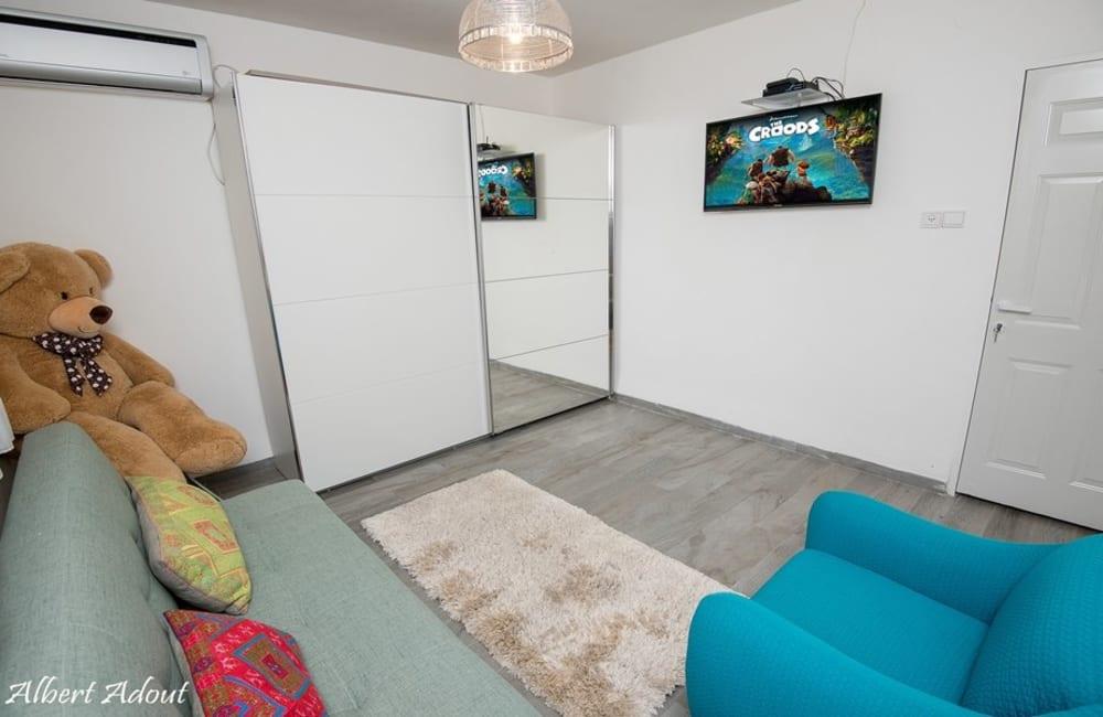 סלון מרווח עם טלוויזיה במסך שטוח 60 אינץ' ומערכת סראונד וסרטי קולנוע לבחירה