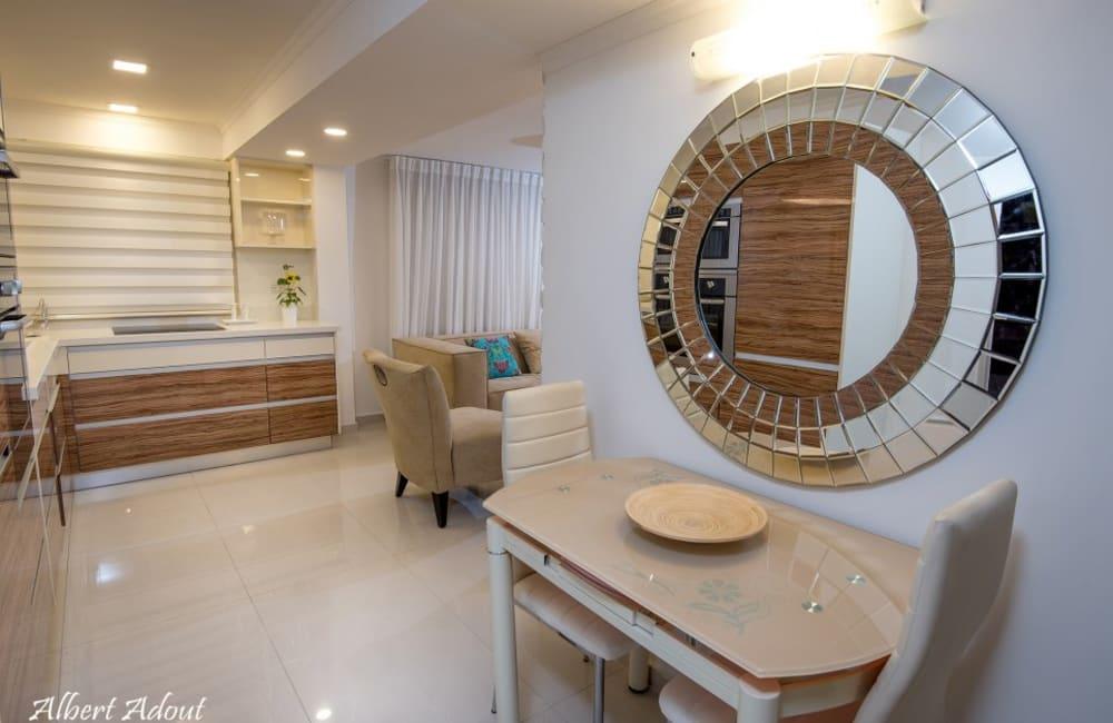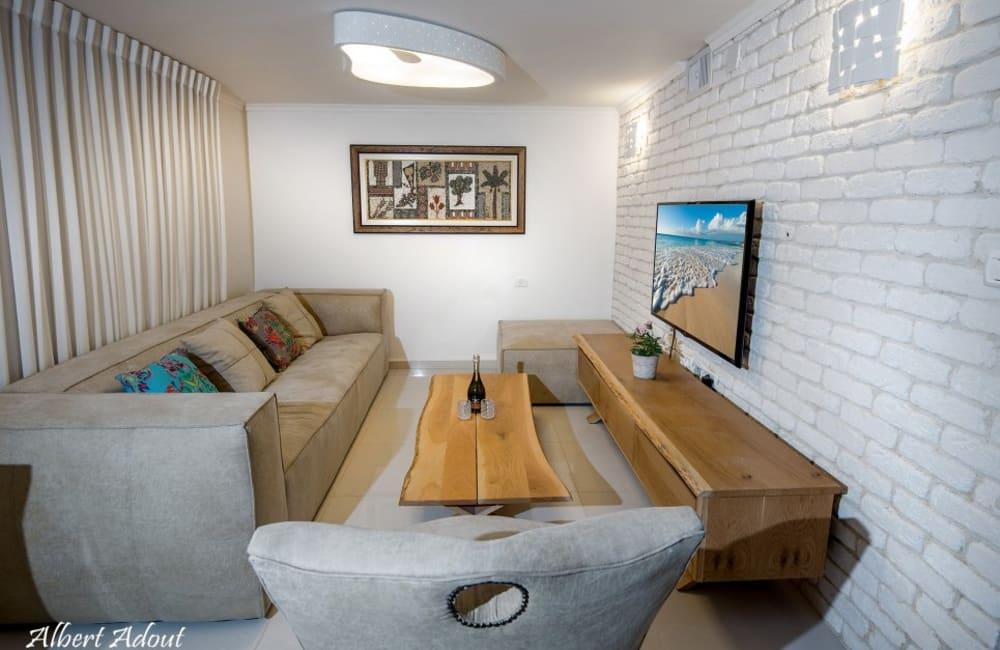 סלון + מסך צפייה + מטבח מאובזר ופינת אוכל