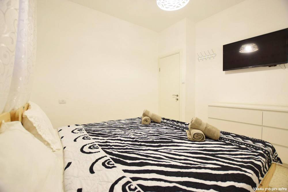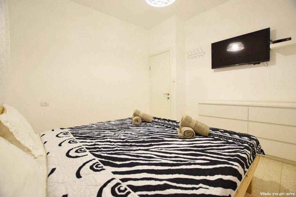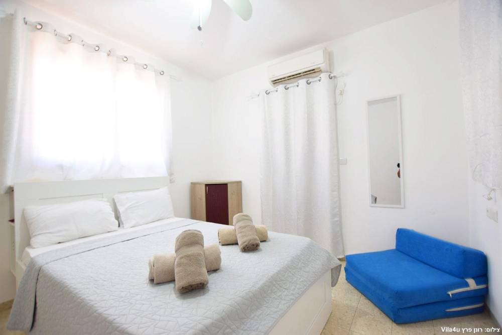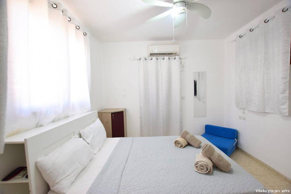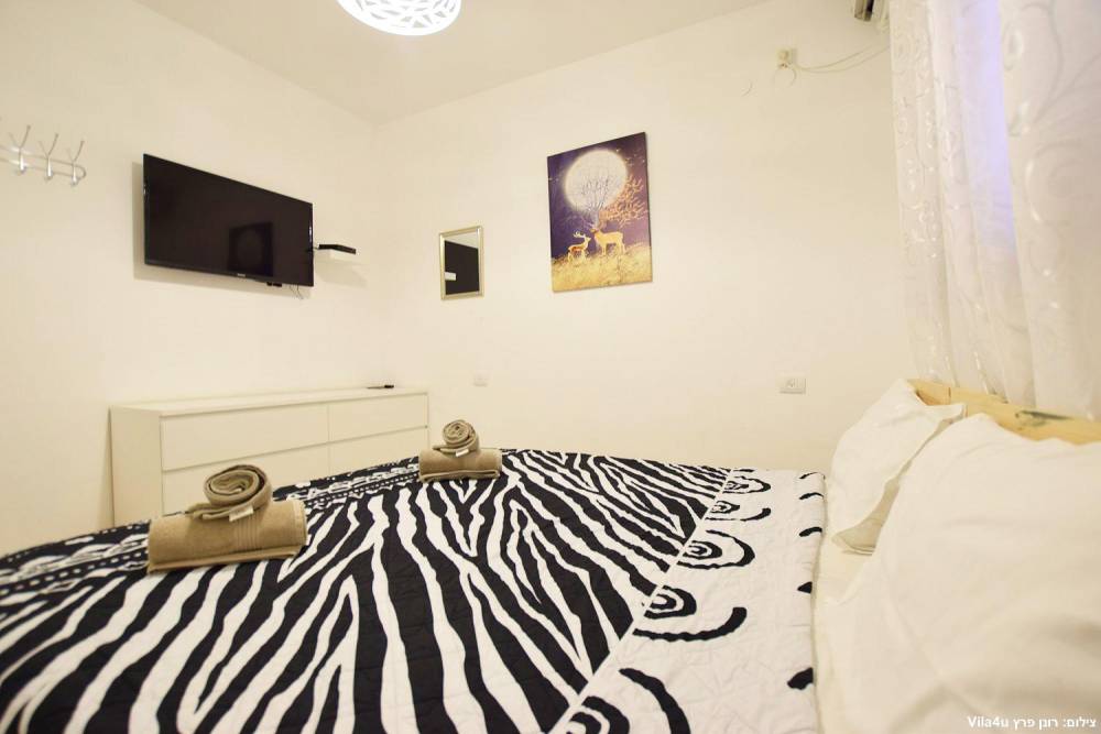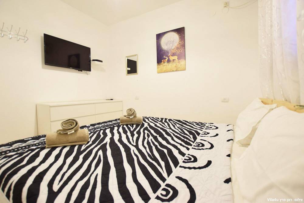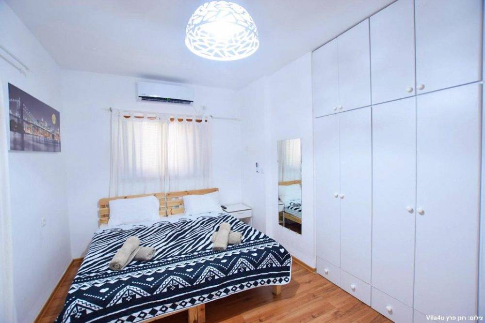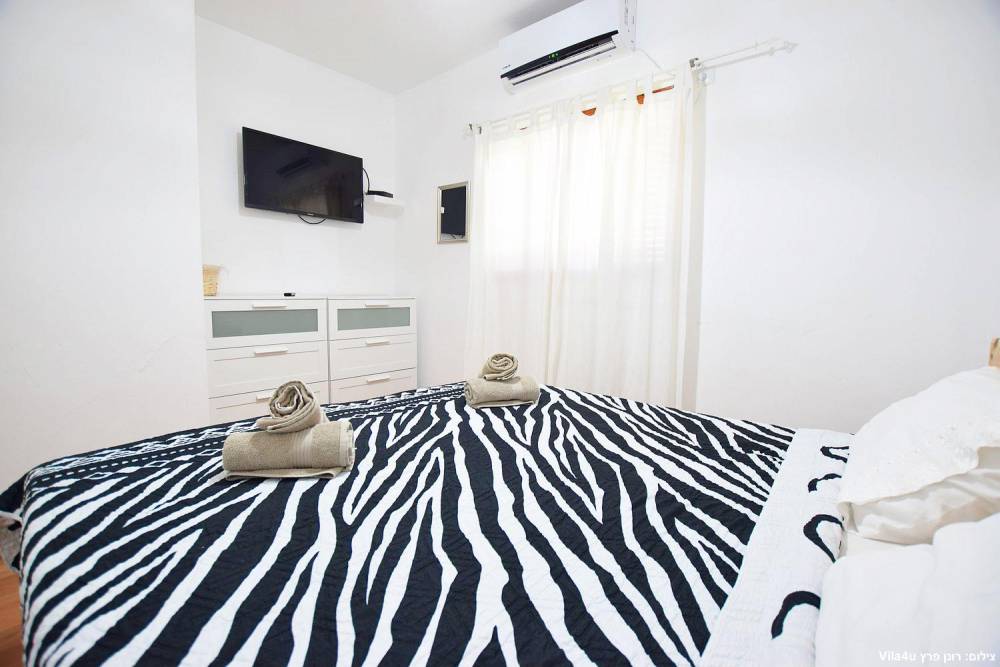 חדר שינה 5- מיטה זוגית, מיזוג אוויר, טלוויזיה עם חיבור ל-HOT, שידות וארונות לאחסון ומנורת לילה