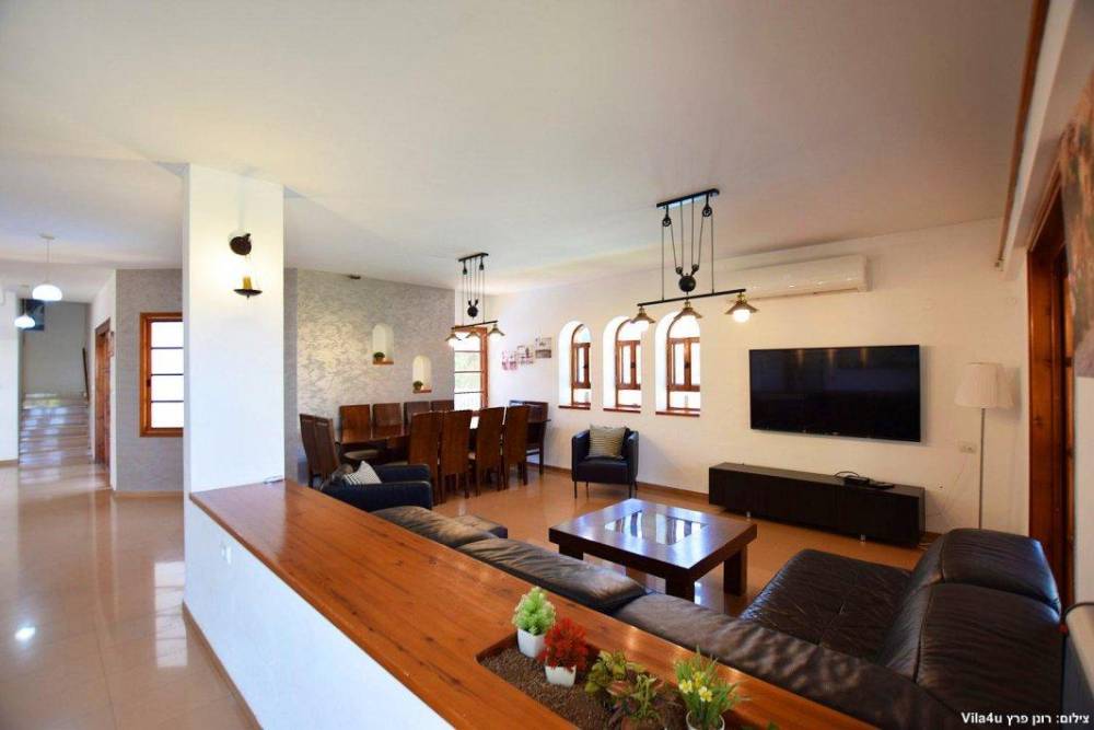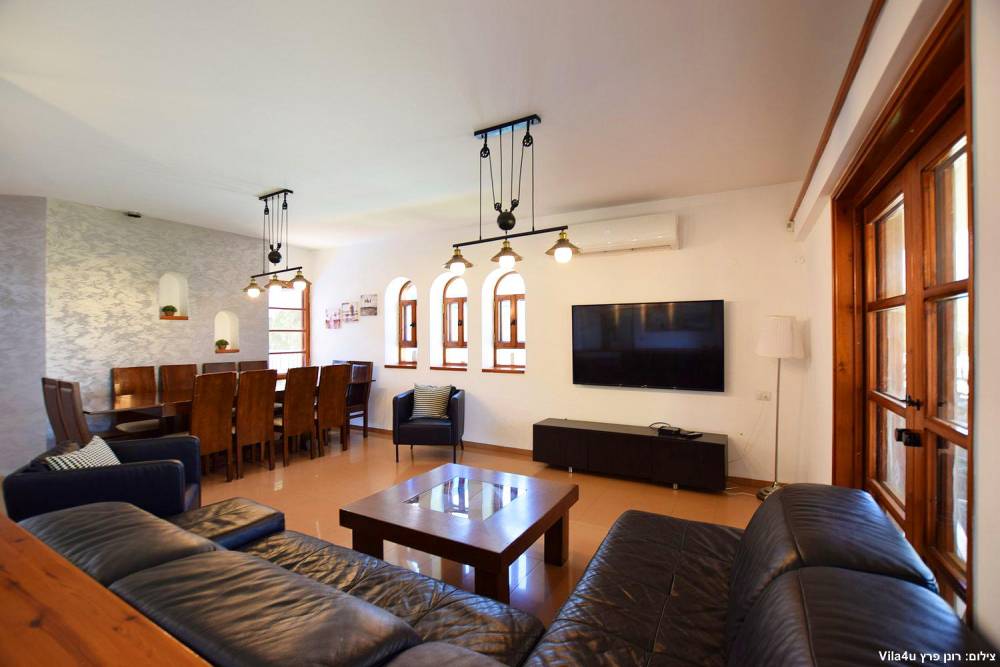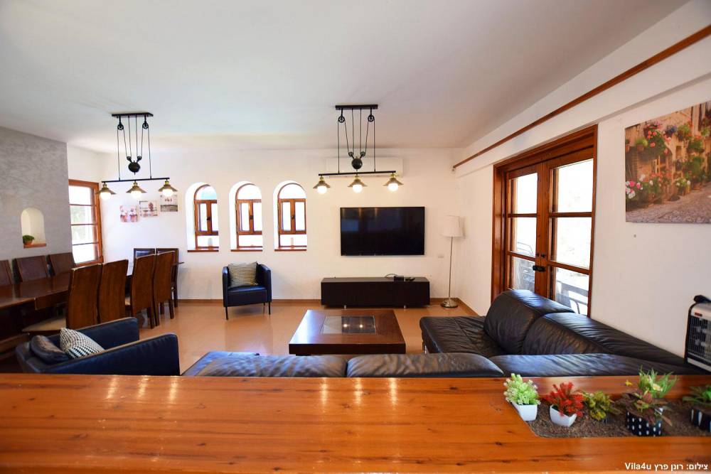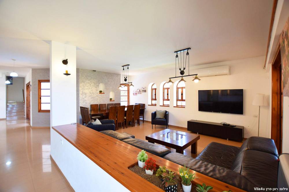סלון רחב ידיים עם מערכת ישיבה וטלוויזיה עם חיבור ל-HOT