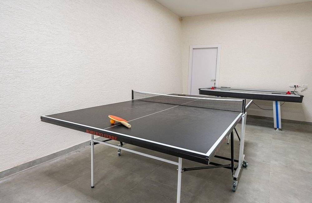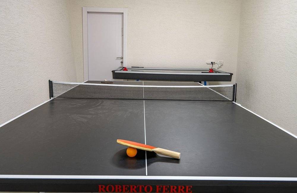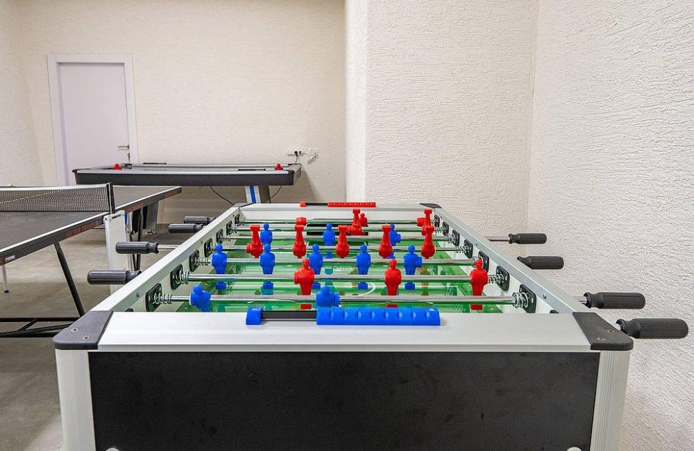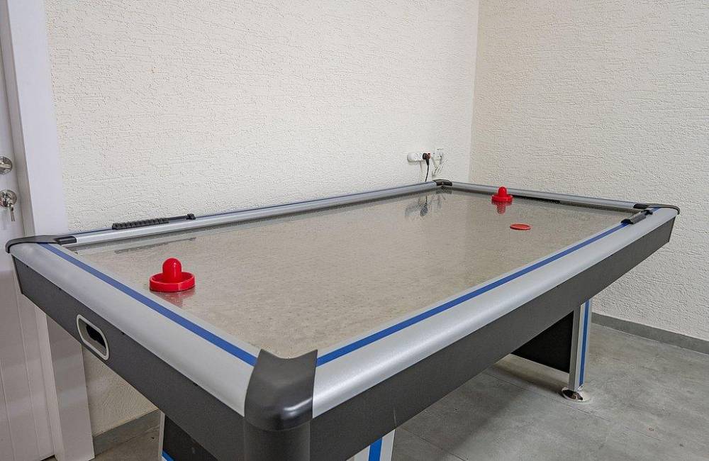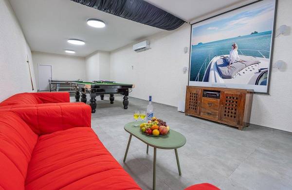 חדר קולנוע פרטי עם מקרן ומשחקי שולחן: סנוקר מקצועי, טניס שולחן, הוקי אוויר וכדורגל שולחן
