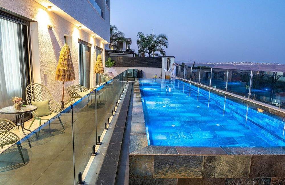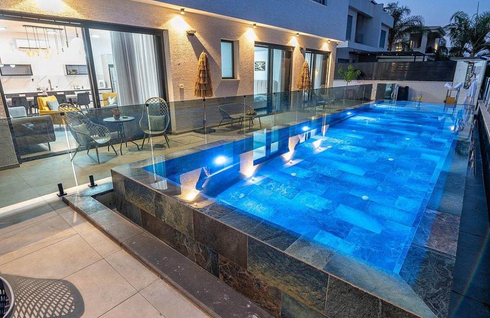בריכה מחוממת גדולה בגודל 12×3 מטר