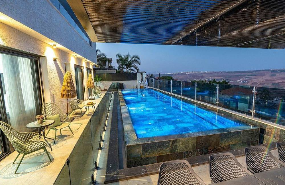 וילה אלטה לוקס יוקרה - וילה מפוארת ומפנקת לחופשות משפחתיות ואירוח עד 18 אורחים. הווילה מאובזרת בכל טוב, עם 6 חדרי שינה מעוצבים, סלון ענק עם טלוויזיה 75 אינץ’ וחיבור הוט, פינת אוכל יוקרתית ומטבח מלא בציוד כולל כלי הגשה. גולת הכותרת: חדר קולנוע פרטי עם מקרן ענק ושפע של משחקי שולחן: כדורגל, הוקי אוויר, טניס שולחן וסנוקר מקצועי. בחצר מחכה לכם בריכה עצומה מחוממת מול נוף עוצר נשימה לפוריה, עלומות וטבריה. בנוסף פינת מנגל, ריהוט גן איכותי, תאורת ערב קסומה, מקלחון חיצוני ופינות ישיבה נעימות.