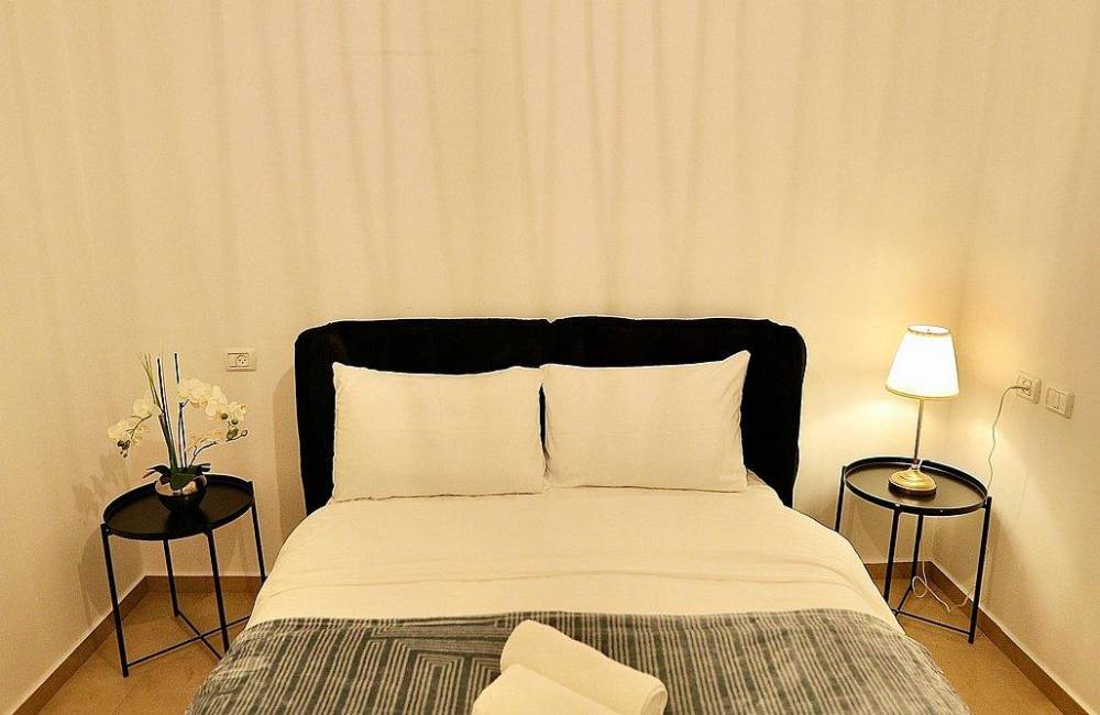 מיטה זוגית מוצעת, מיזוג אוויר, שידות ומנורות לילה
