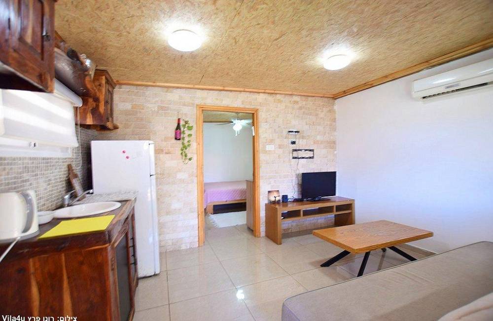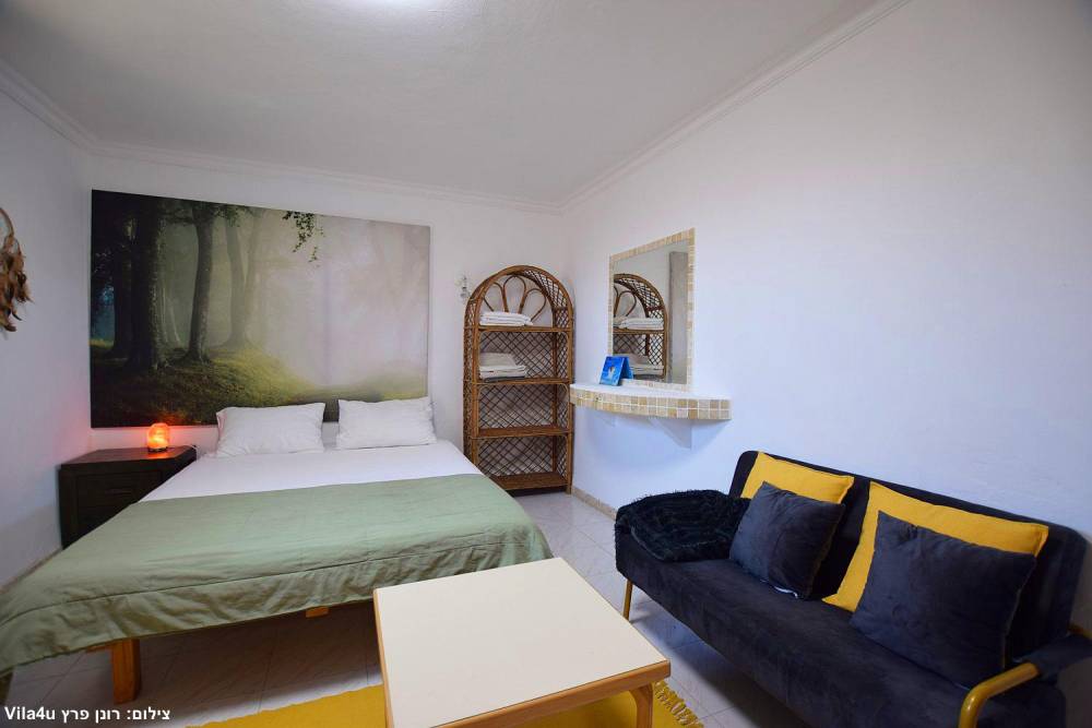מיטה זוגית, מקלחת, שירותים, מטבחון, פינת ישיבה