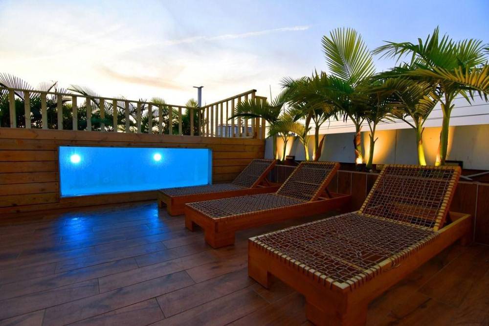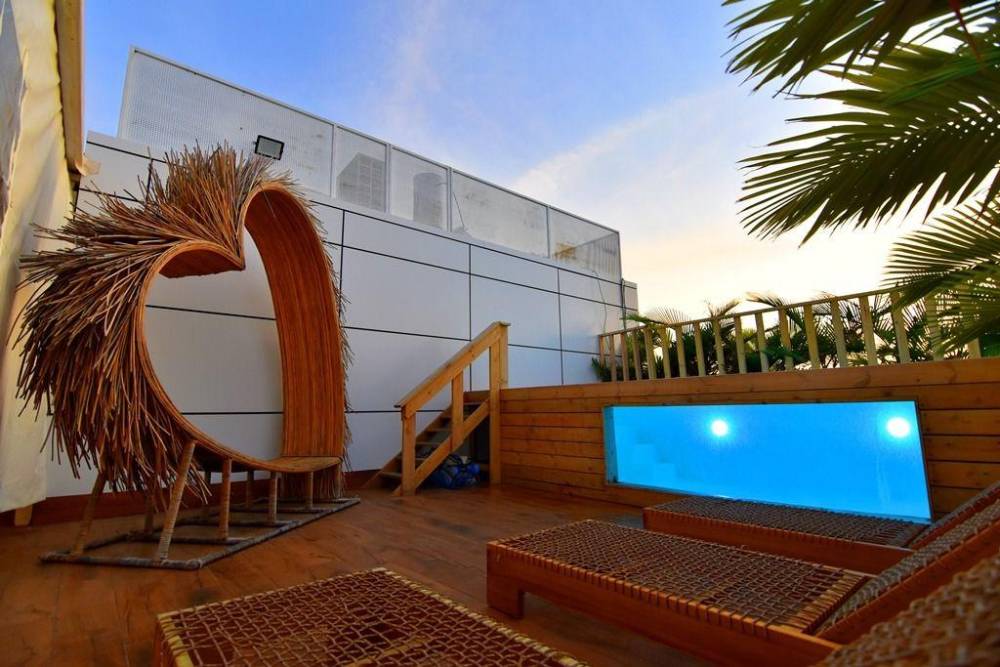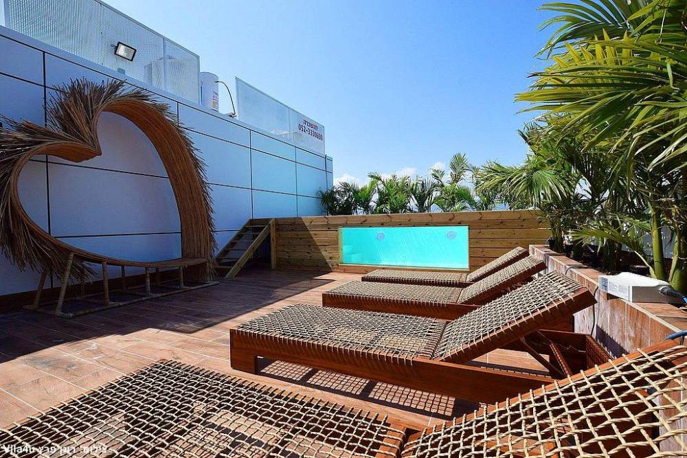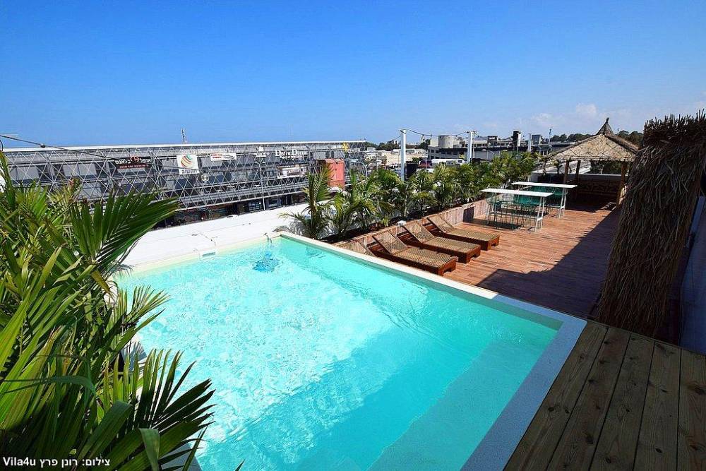 המתחם מעוצב בקפידה, עם צמחייה ירוקה, פינות ישיבה נוחות ונוף מרהיב של הסביבה, רחבה ענקית, בריכת שחייה שקופה מחוממת, מיטות שיזוף מיוחדות, פינות ישיבה על הבר, ועוד מגוון פינוקים.