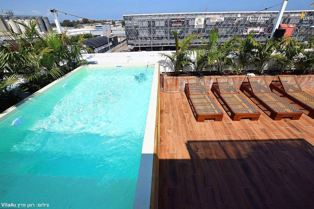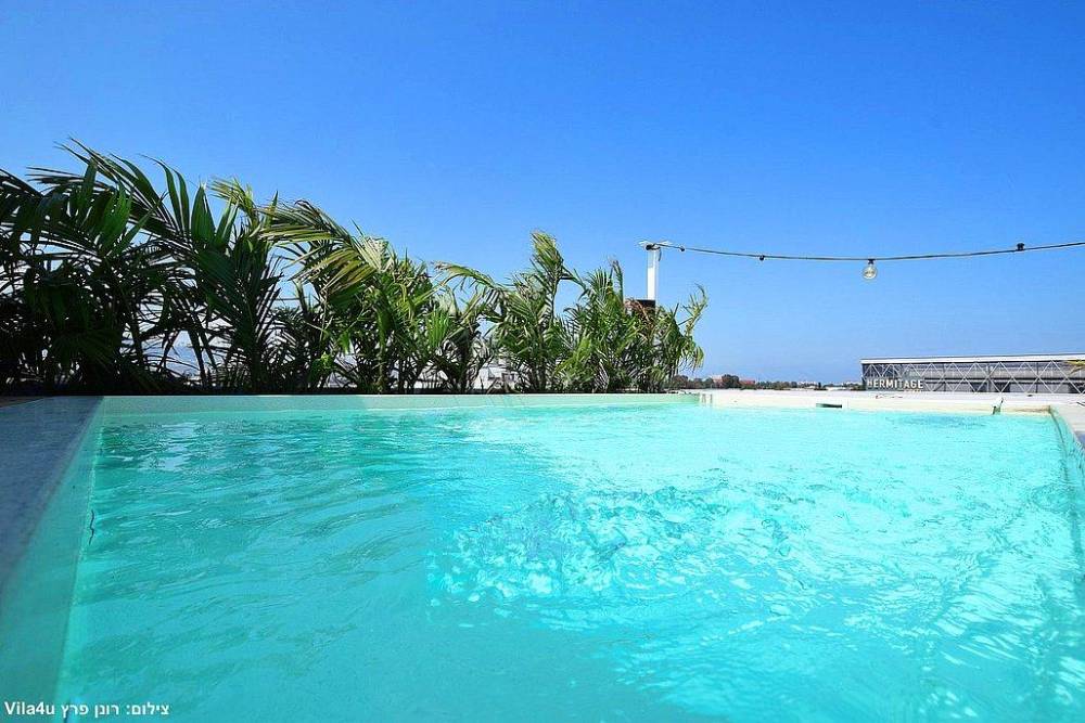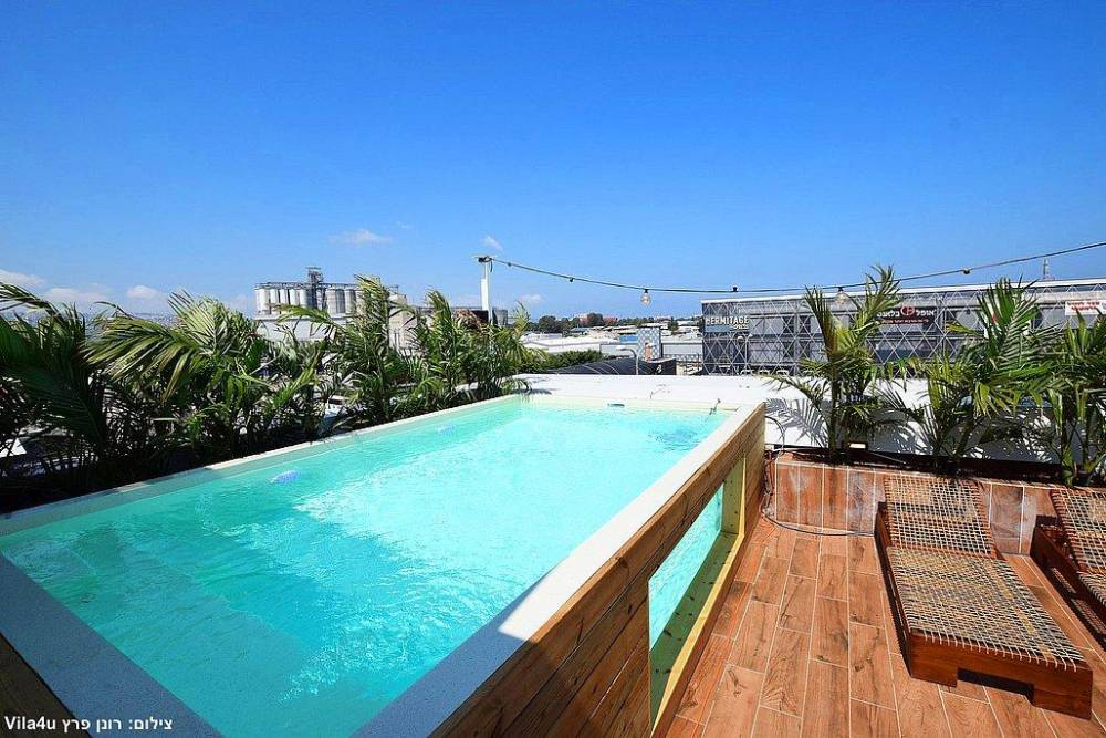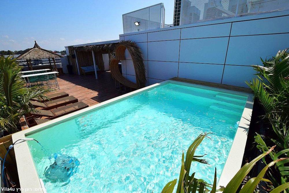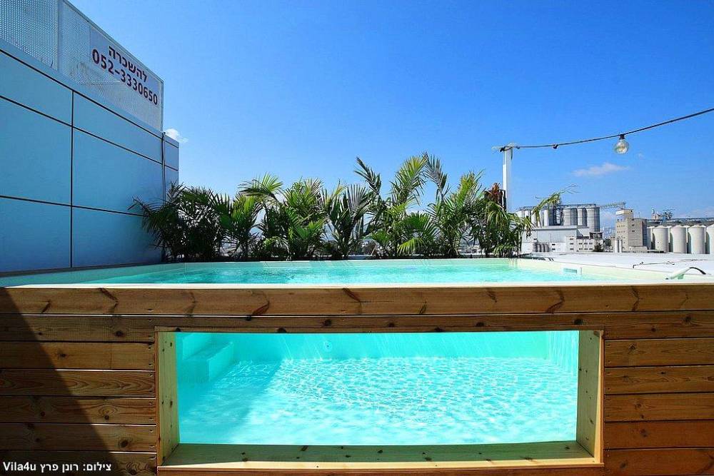 בריכת שחייה שקופה ומחוממת במתחם הגג