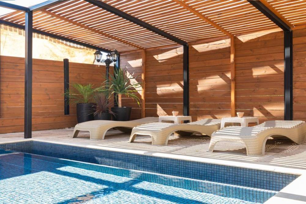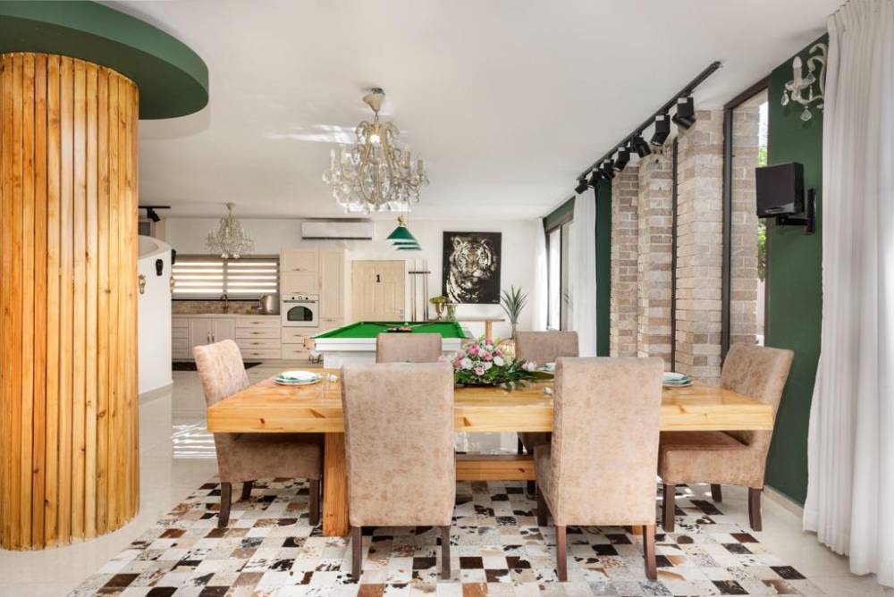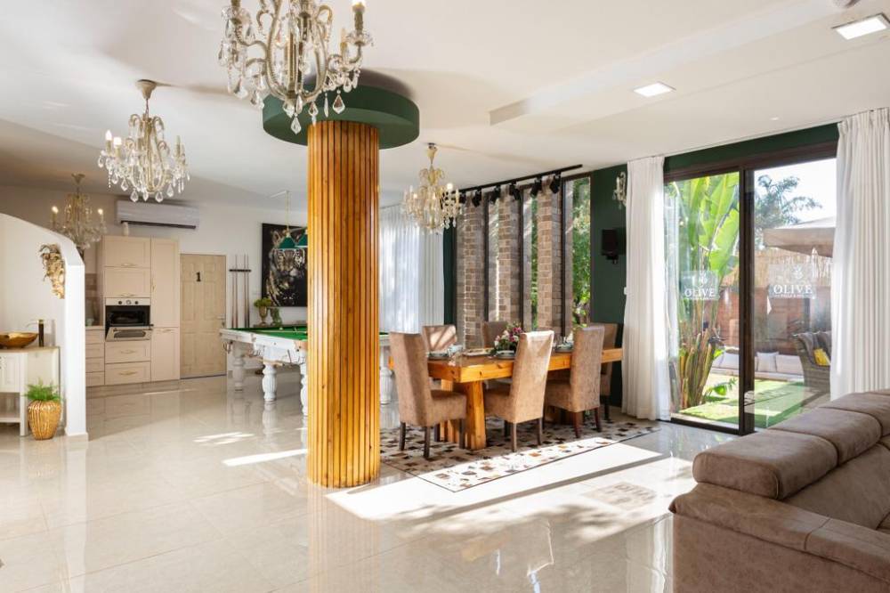 כבר בכניסה אל חצר הוילה, תבחינו בשלל עצי נוי וצמחייה ירוקה העוטפת את כל המתחם החיצוני, בליוי ריהוט גן יוקרתי, פינות BBQ לבחירתכם, בריכה ענקית בנויה, מתחם ספא עם ג'קוזי גדול. פנים הוילה מושקע ומעוצב בטוב טעם עם דגש רב מהפרטים הקטנים ועד לגדולים. הוילה מונה כ-5 חדרי שינה ענקיים, מטבח מאובזר קומפלט, סלון רחב ידיים, שולחן סנוקר ועוד.. אנו מזמינים אתכם לחווית אירוח יוצאת מן הכלל בוילה אוליב אנד ספא!