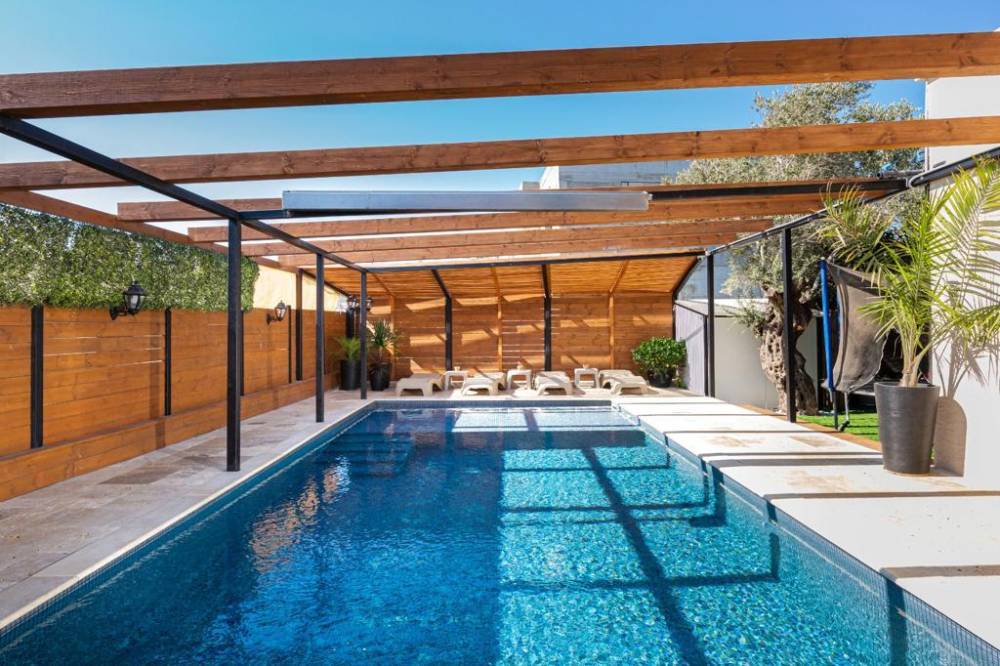 בריכת שחייה מחוממת ומקורה בגודל 11X4 עומק 1.50