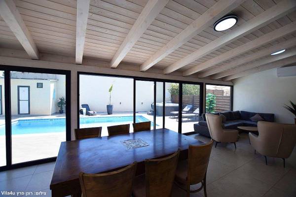 במתחם שלנו האורחים יוכלו להנות מבריכת שחייה מחוממת, שולחן פינג פונג, ג'קוזי ספא מקורה, מגוון פינות ישיבה ומיטות שיזוף בצמוד לבריכה, מתחם פנים עם עיצוב מרשים ו-5 חדרי שינה מרווחים ומאובזרים לנוחיותכם.