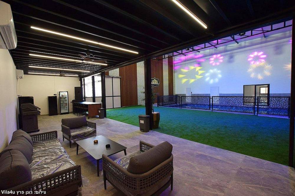 המתחם תוכנן בקפידה כדי להעניק חווית אירוח מושלמת: עם בריכה מחוממת מקורה בשילוב ג'קוזי, רחבת ריקודים ענקית, פינות ישיבה יוקרתיות, בר אלכוהול עשיר, מטבח חוץ, מערכות תאורה והגברה מתקדמות – כל מה שצריך בשביל אירוע שהוא וואו אחד גדול.