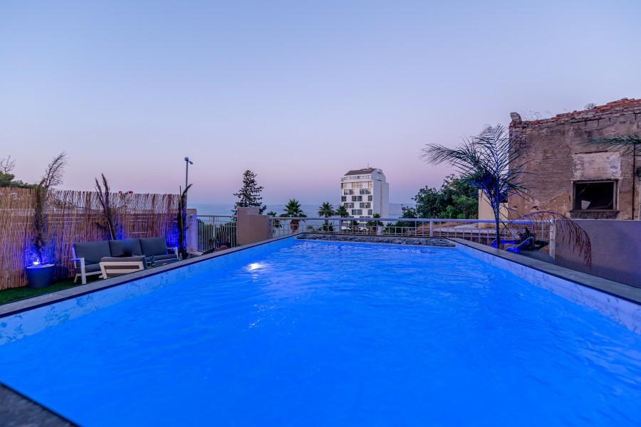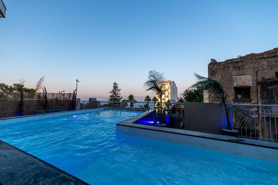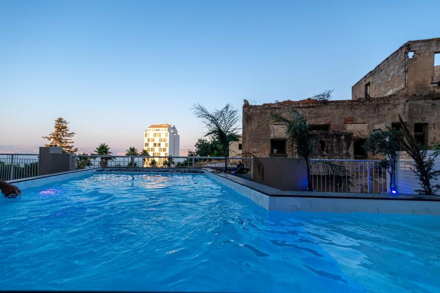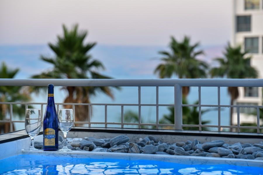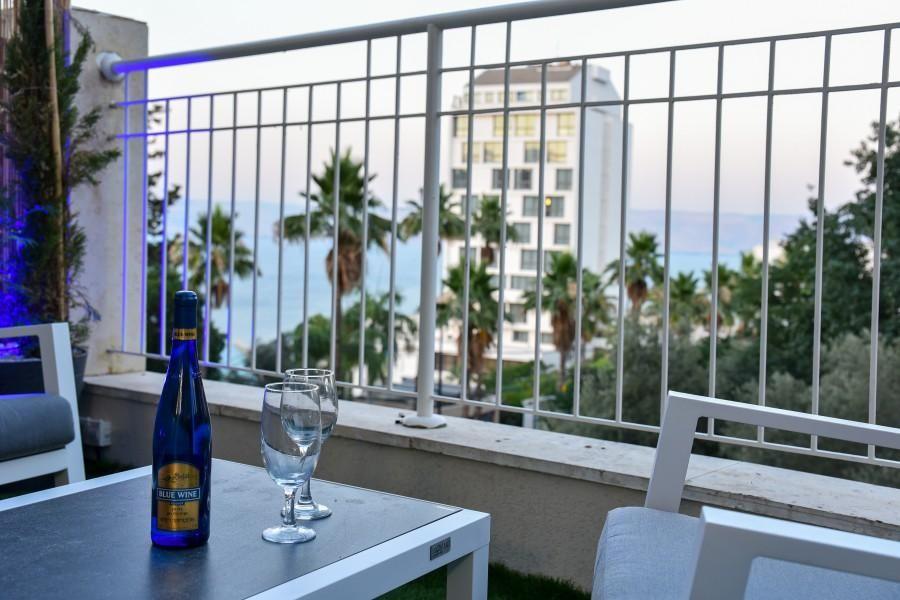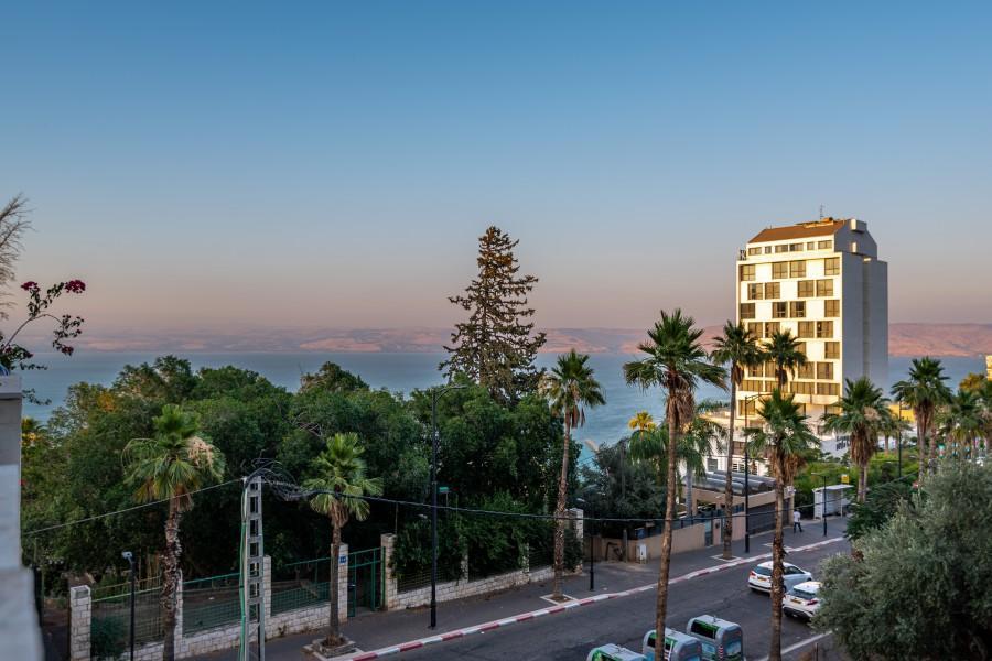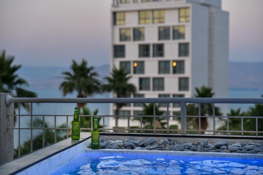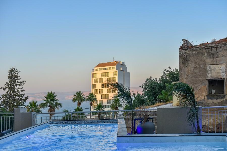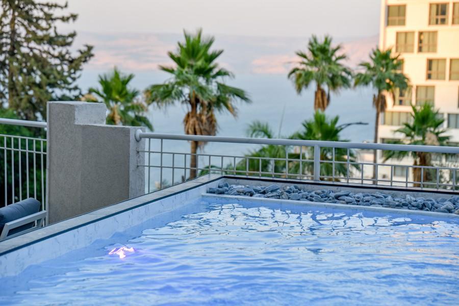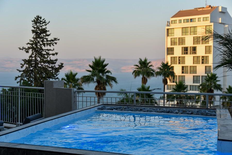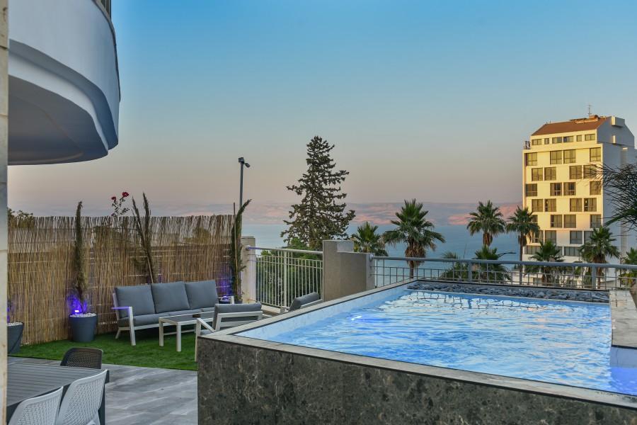 בריכת שחייה מחוממת בעונת החורף, משקיפה לנוף קסום של הכנרת