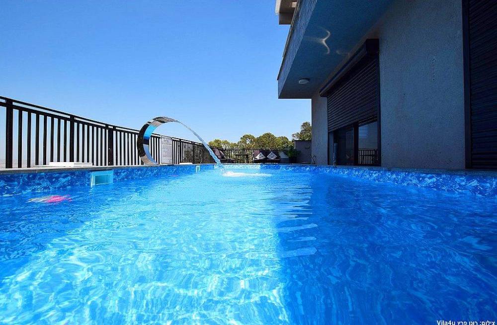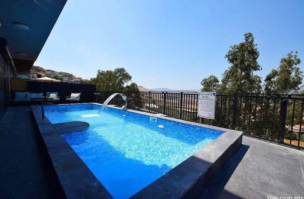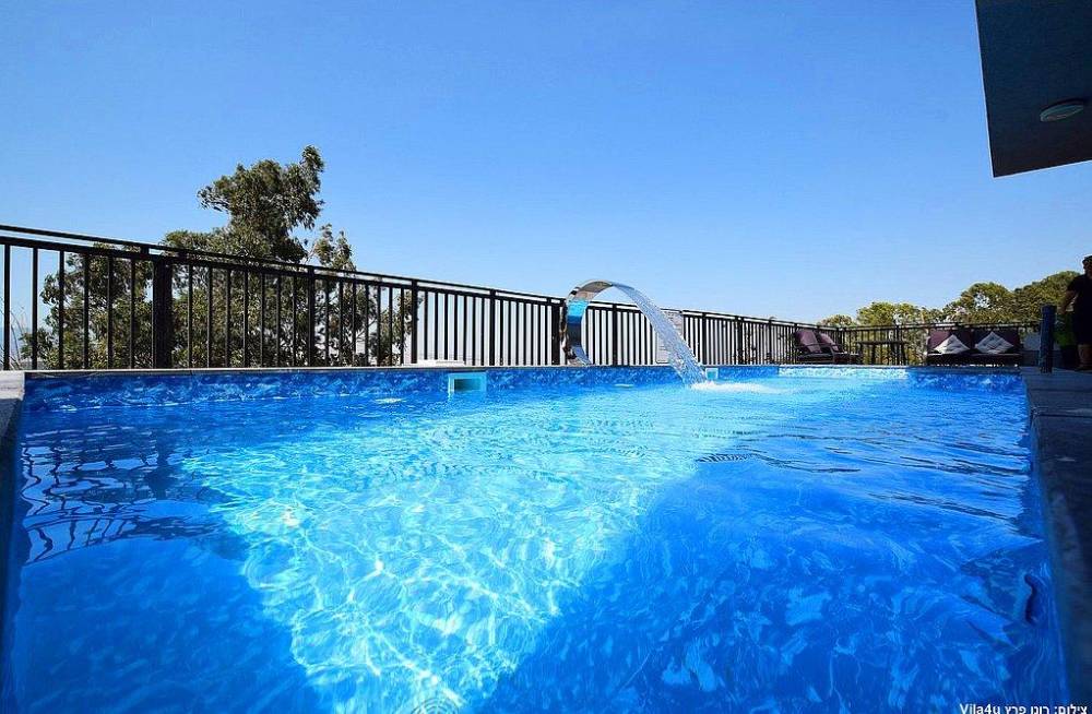 יציאה לבריכת שחייה עם מפל מים בגודל 7.5X3, הבריכה מחוממת בחודשי החורף