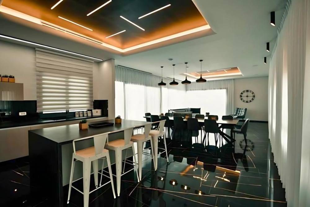 סלון מעוצב עם מערכת קולנוע ביתית וטלוויזיה חכמה מחוברת ל-YES