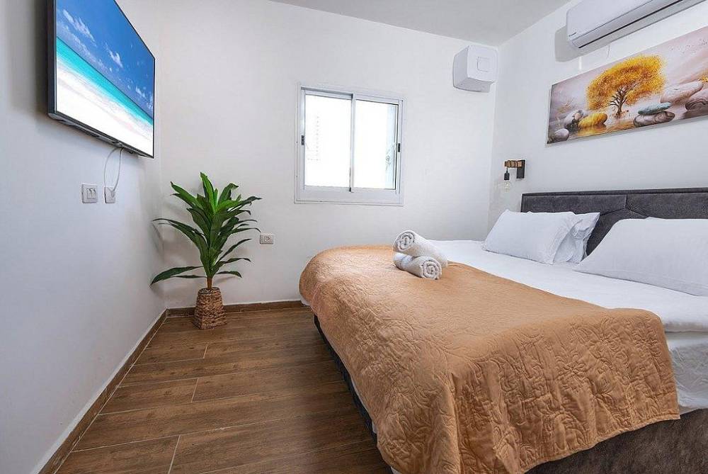 3 חדרי שינה: כל חדר עם מיטה זוגית, טלוויזיה, מזגן, שידות לאחסון