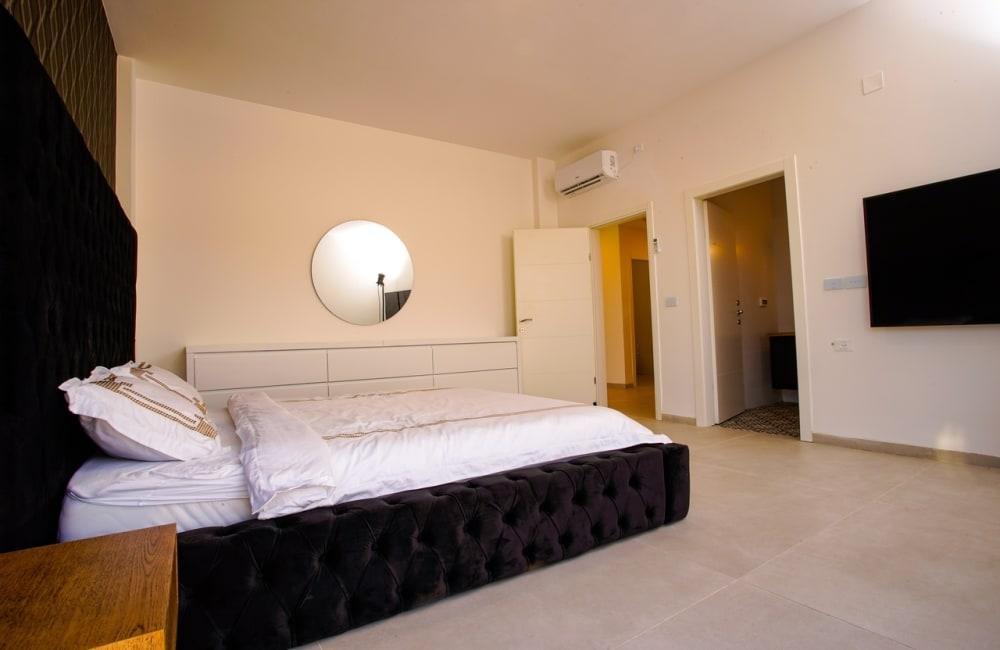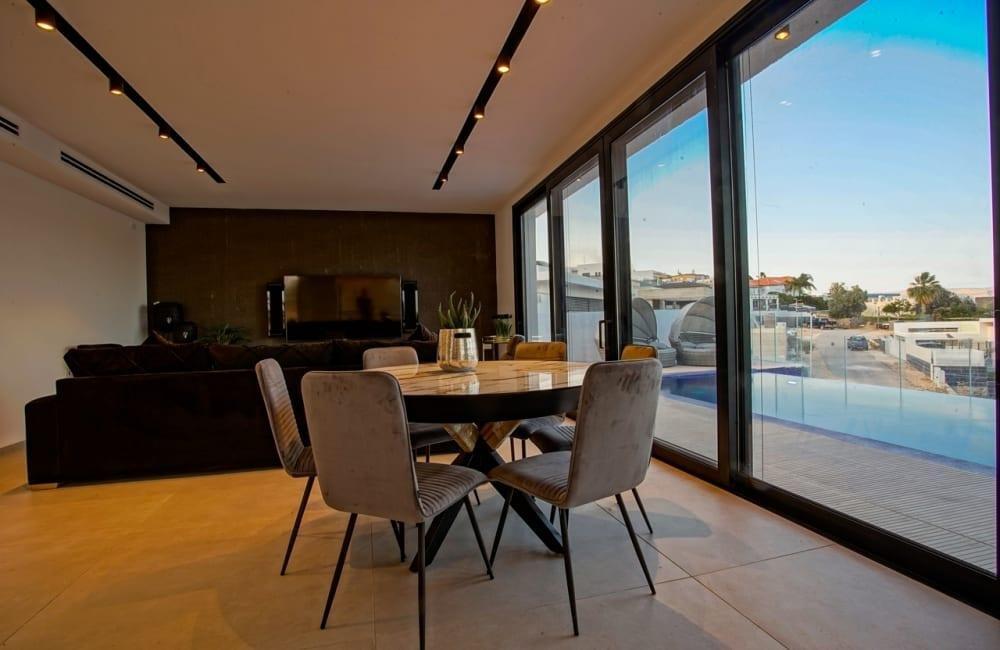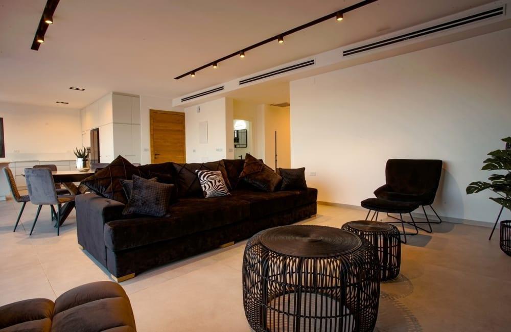סלון גדול ומרווח עם מסך שטוח בגודל 75 אינץ וחיבור ל HOT ונטפליקס.